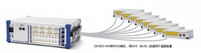 具有12-100Hz采样率和350V电流隔离。 EPAD2系列有一个接口模块-- EPAD2-USB--将RS485数据转换为 USB。 DEWETRON系统有一个 EPAD2接口,用于通过单根电缆简单 地连接EPAD2模块作为静态通道扩展。