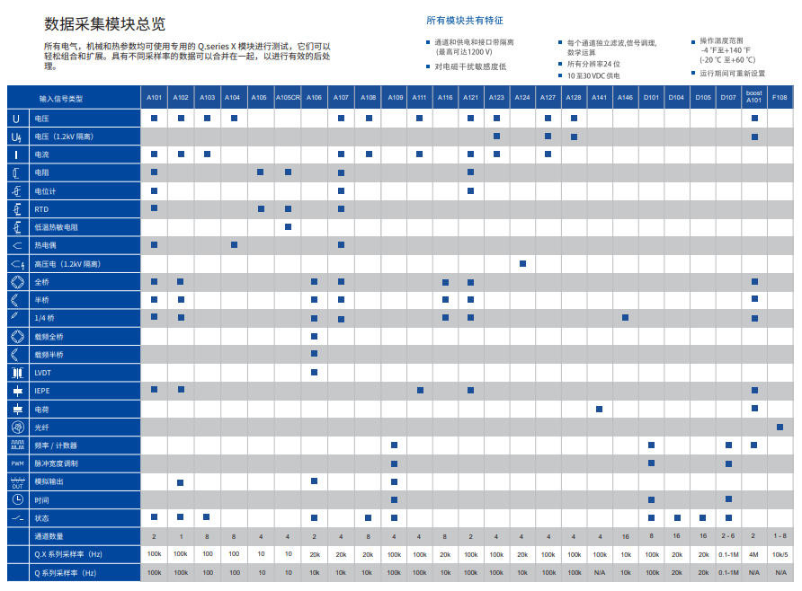 所有电气,机械和热参数均可使用配套的Q.series X模块进行测试,它们可以轻松组合和扩展。具有不同采样率的数据可以合并在一起,以进行有效的后处理。以下有各模块参数可下载